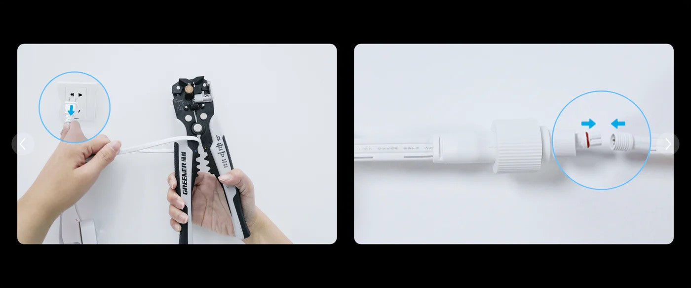 Power adapter: Not waterproof — please ensure it’s connected to a power outlet inside an enclosed electrical box for protection;